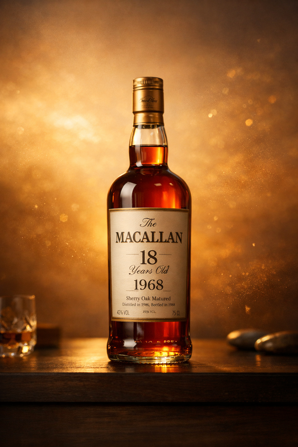 麥卡倫18年1968(The Macallan 18 Years Old 1968 Vintage),是威士忌收藏市場中極具代表性的單一年份酒款之一。此酒於1968年蒸餾,熟成18年後裝瓶,屬於早期麥卡倫以單一年份(Vintage)+雪莉桶風格推出的經典系列,在今日已被視為歷史級收藏品。
