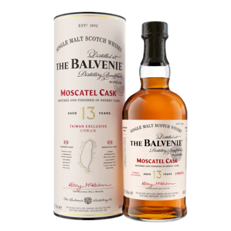 多次贏得雙金獎章,風味以深層雪莉桶陳年為核心,特色在於乾果、巧克力、香草香氣濃郁而豐富。 - 百富 13 年 蜜絲佳雪莉桶(The Balvenie 13 Year Old Sherry Cask)